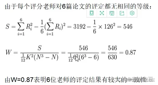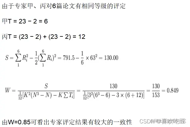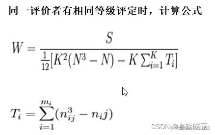 ●nij为第i个评价者的评定结果中第j个重复等级的相同等级数。