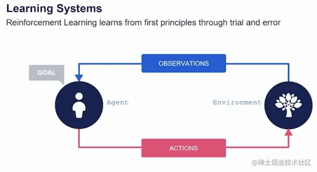智能体通常有一个想要在环境中实现的目标,这个目标是系统设计者制定的,比如赢得一局游戏、实现得分最大化等。所以它第二个任务就是,思考、选择出能让它逐步靠近目标的最佳行动方案。