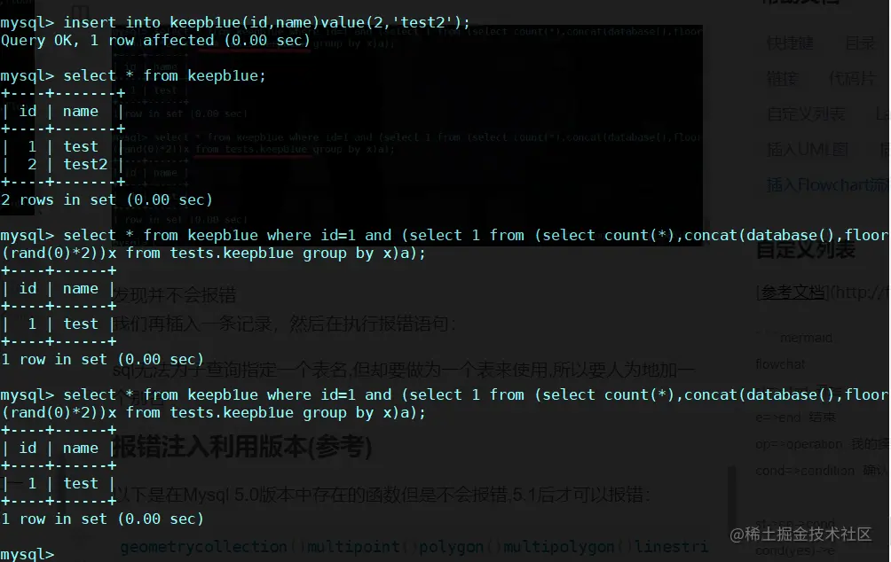 1、mysql版本大于5.0 2、查询表记录数必须在3条或3条以上 3、rand()需要有随机因子rand(0)