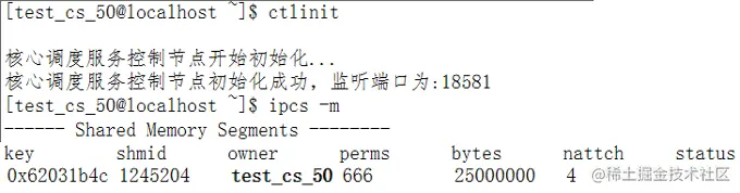 如果监听启动成功,用户可以使用ipcs -m命令来查看共享内存,如下图所示:
