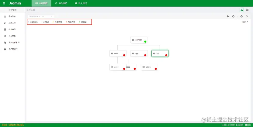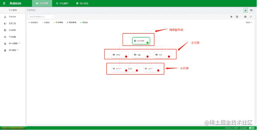 登录Admin管理平台,在平台节点的节点关系图中,如下图所示: