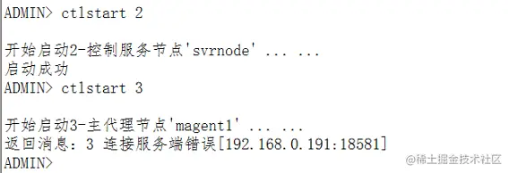 因为并没有在【192.168.0.191:18589】主机上安装节点,所以启动失败。如果需要停止,系统提供了ctlstop命令,使用方法跟ctlstart一样。
