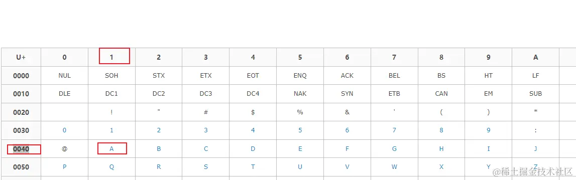 例如: A的ASCII码 65(01000001), 转换成unicode为1000001,16进制为0040 (一般表示为\u0041)