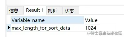 show variables like 'max_length_for_sort_data';