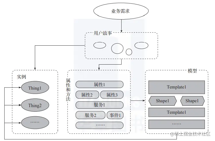 8)用Template、Shape、Thing、属性、服务、事件、订阅等要素,以相互之间的分配与继承关系完整地描绘第2步的所有用户故事。