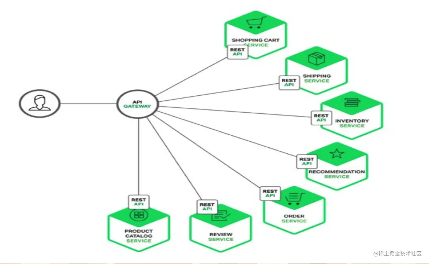 API 网关是一个处于应用程序或服务(提供 REST API 接口服务)之前的系统,用来管理授权、访问控制和流量限制等,这样 REST API 接口服务就被 API 网关保护起来,对所有的调用者透明。因此,隐藏在 API 网关后面的业务系统就可以专注于创建和管理服务,而不用去处理这些策略性的基础设施。