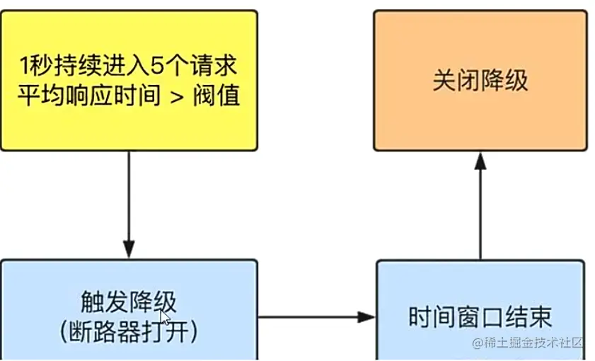 异常比例( DEGRADE_GRADE_EXCEPTION_RATIO):当资源的每秒请求量>=5,并且每秒异常总数占通过量的比值超过阈值(DegradeRule中的count)之后,资源进入降级状态,即在接下的时间窗口( DegradeRule中的 timewindow,以s为单位)之内,对这个方法的调用都会自动地返回。异常比率的阈值范围是[0.0,1.0],代表0%- 100%。4900 ms,若需要变更此上限可以通过启动配置项-Dcsp.sentinel.statistic.max.rt=x来配置。