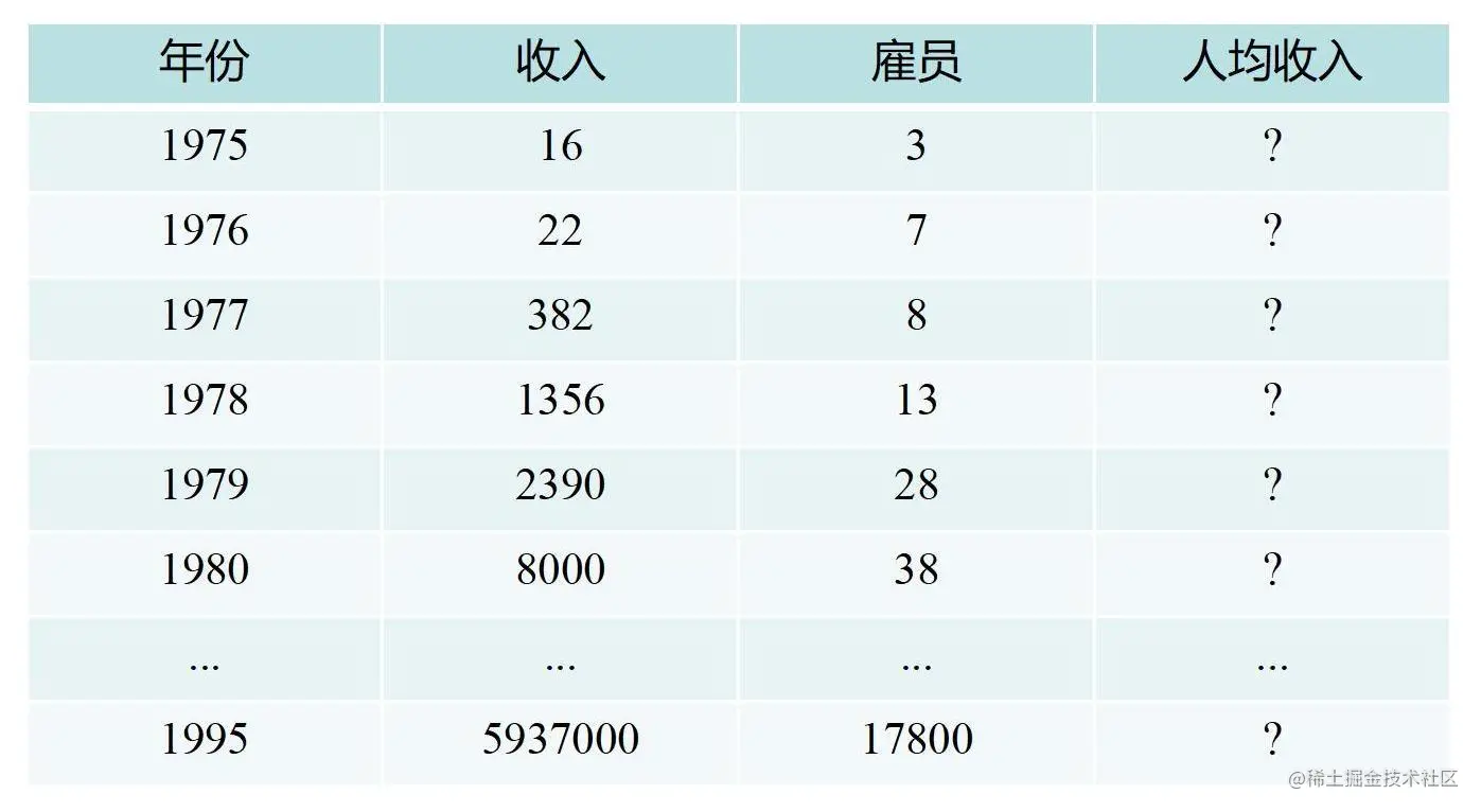 下面是某公司从 1795 年到 1995 年的基本情况: