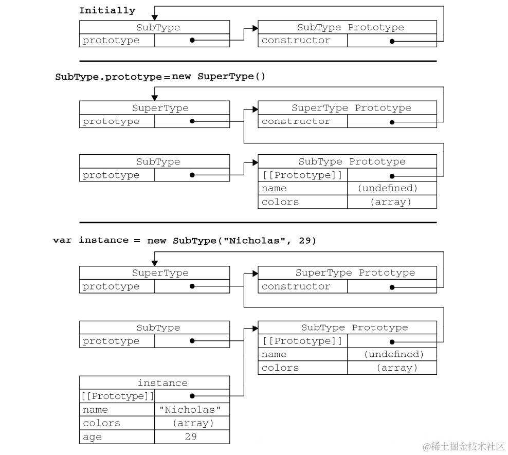 SubType.prototype = new SuperType();