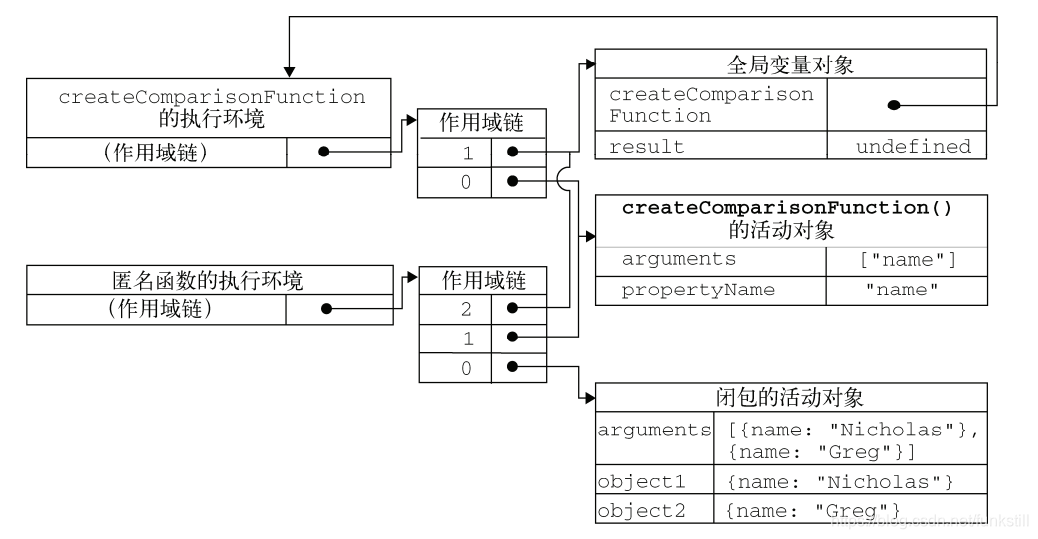 *函数外部则不能访问它们。如果在这个函数内部创建一个闭包,那么闭包通过自己的作用域链也可以访问这