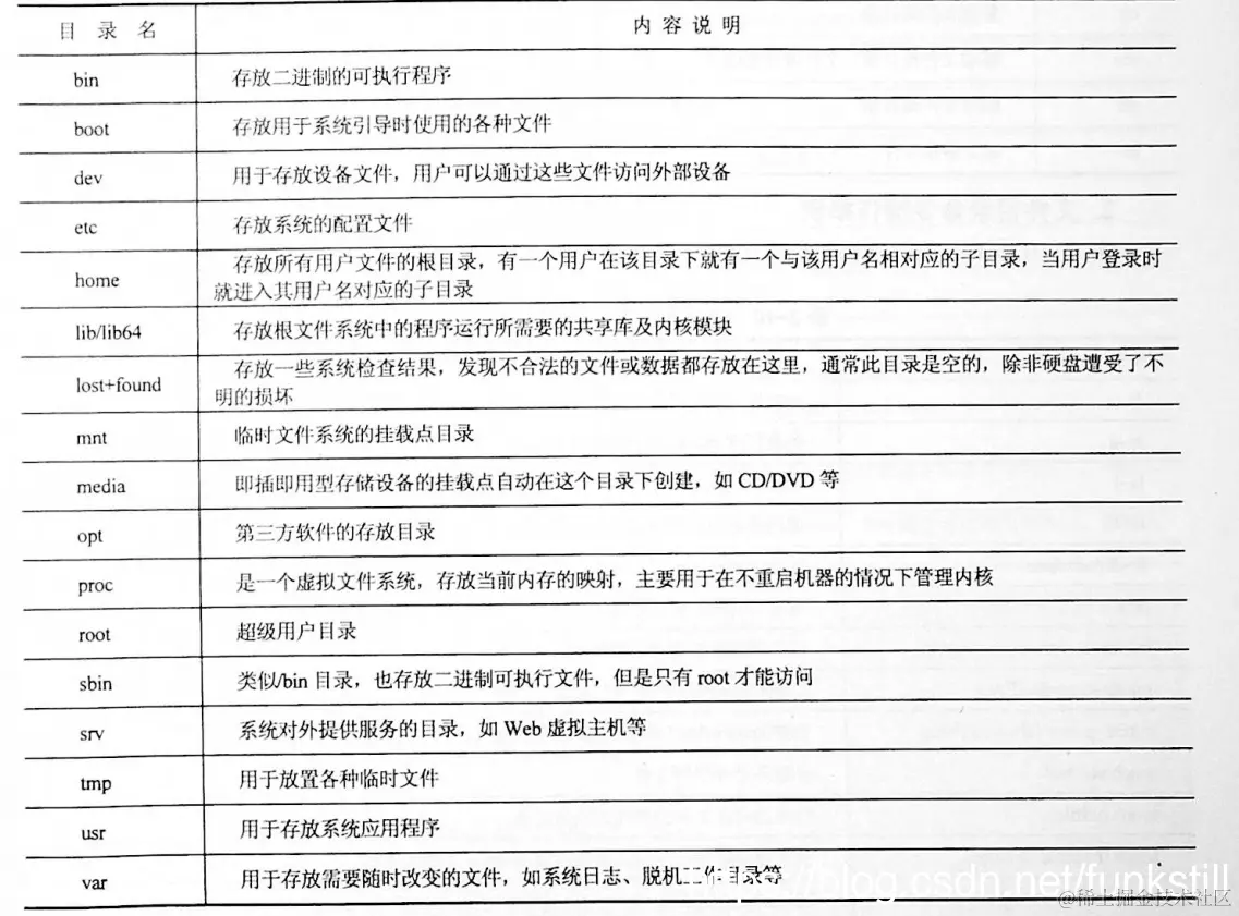 | 实用程序 | 存放在/usr/bin、/usr/sbin、/usr/local/sbin等目录下的实用程序 |