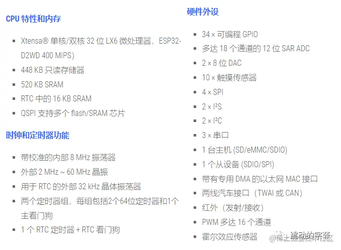 ESP32 芯片是由乐鑫公司继 ESP8266 芯片后推出的又一款集成 WiFi/BLE 功能的微控制器。性能比 ESP8266 更加强大,ESP32 芯片或模组具有下列特点: