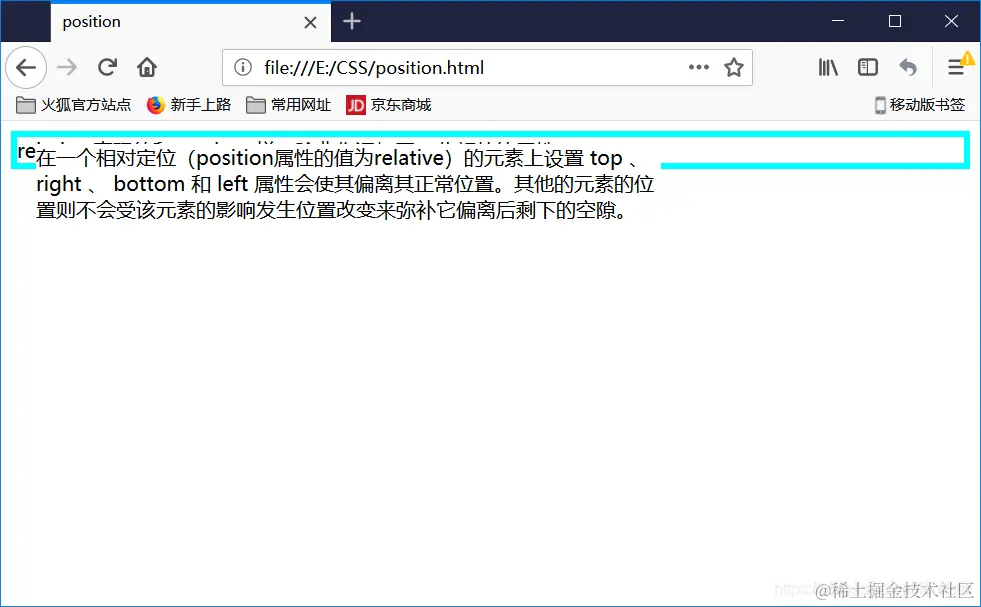 relative表现的和static一样,除非你添加了一些额外的属性。在一个相对定位(position属性的值为relative)的元素上设置