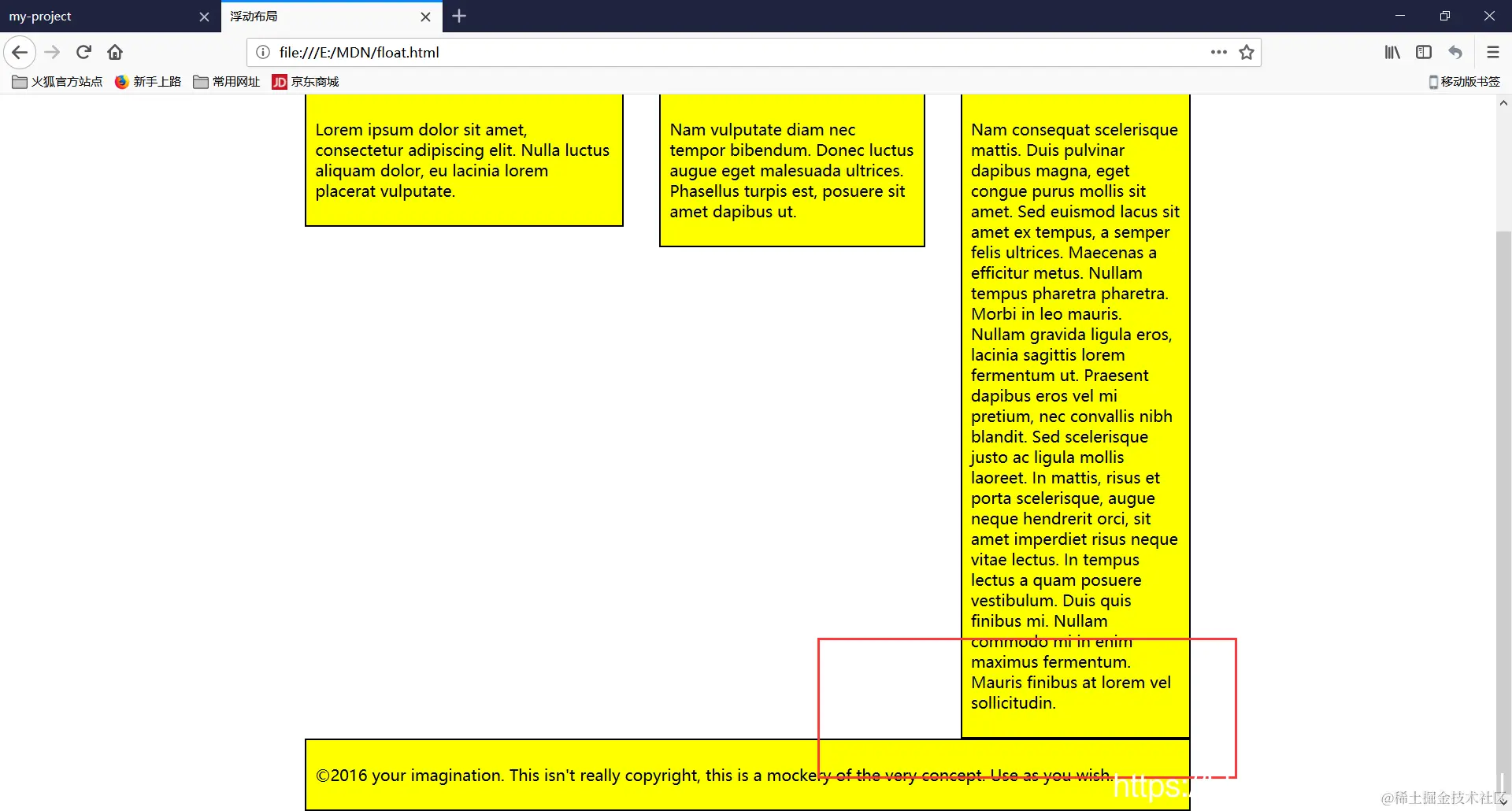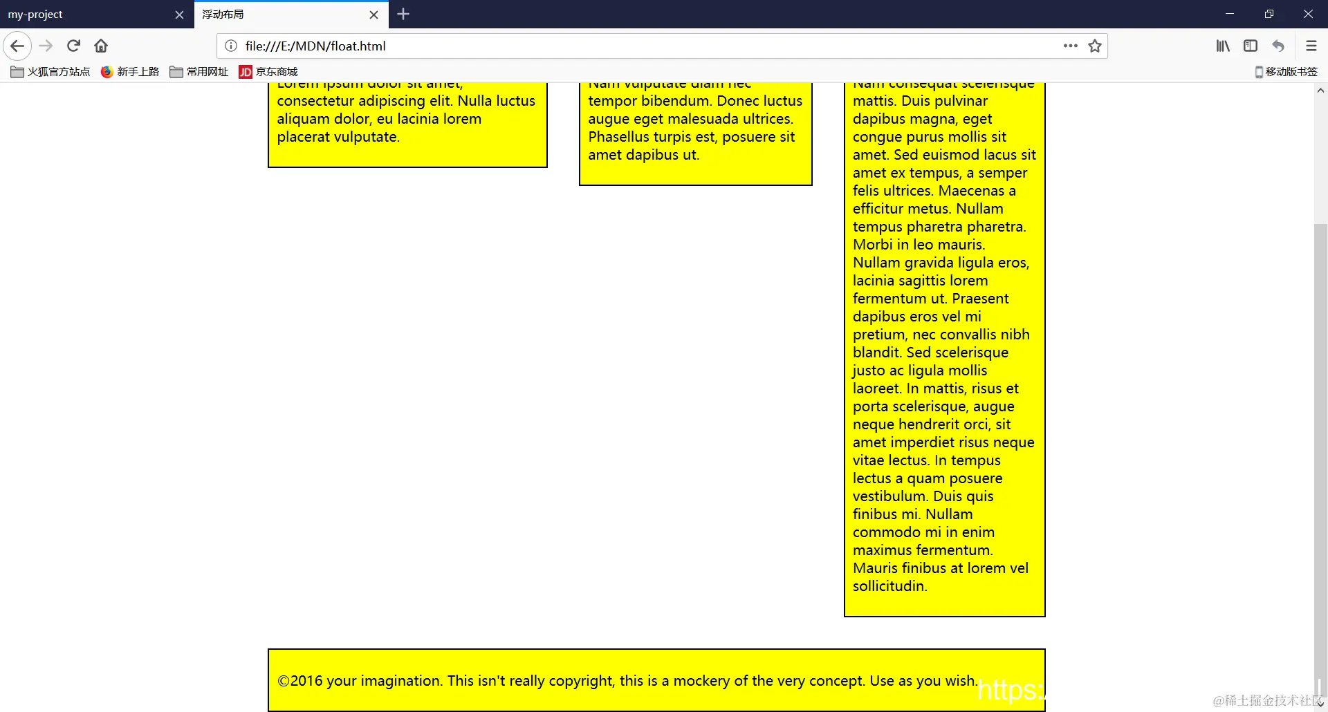 浮动的元素存在于正常的文档布局流之外,在某些方面的行为相当奇怪,比如不能通过margin-top调整页脚的顶距