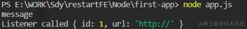 emitter.emit('messageLogged', { id: 1, url: 'http://' })