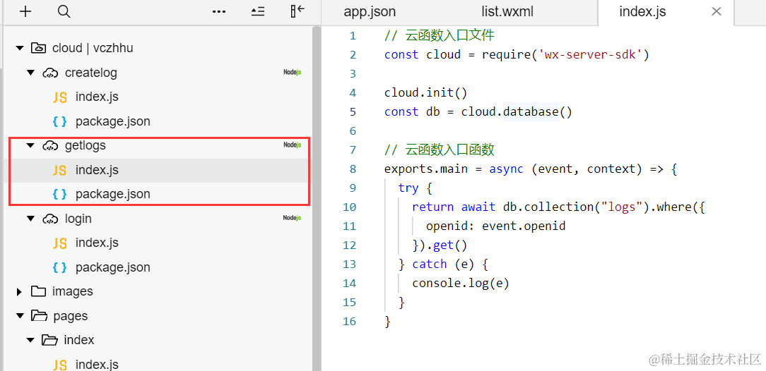 新建log获取云函数