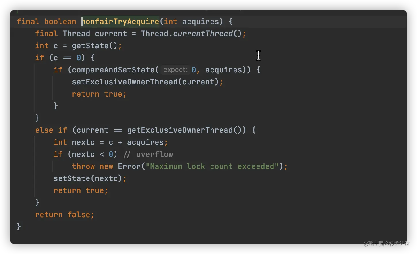 - 使用acquire方法获取锁执行权,获取到了参数就-1;