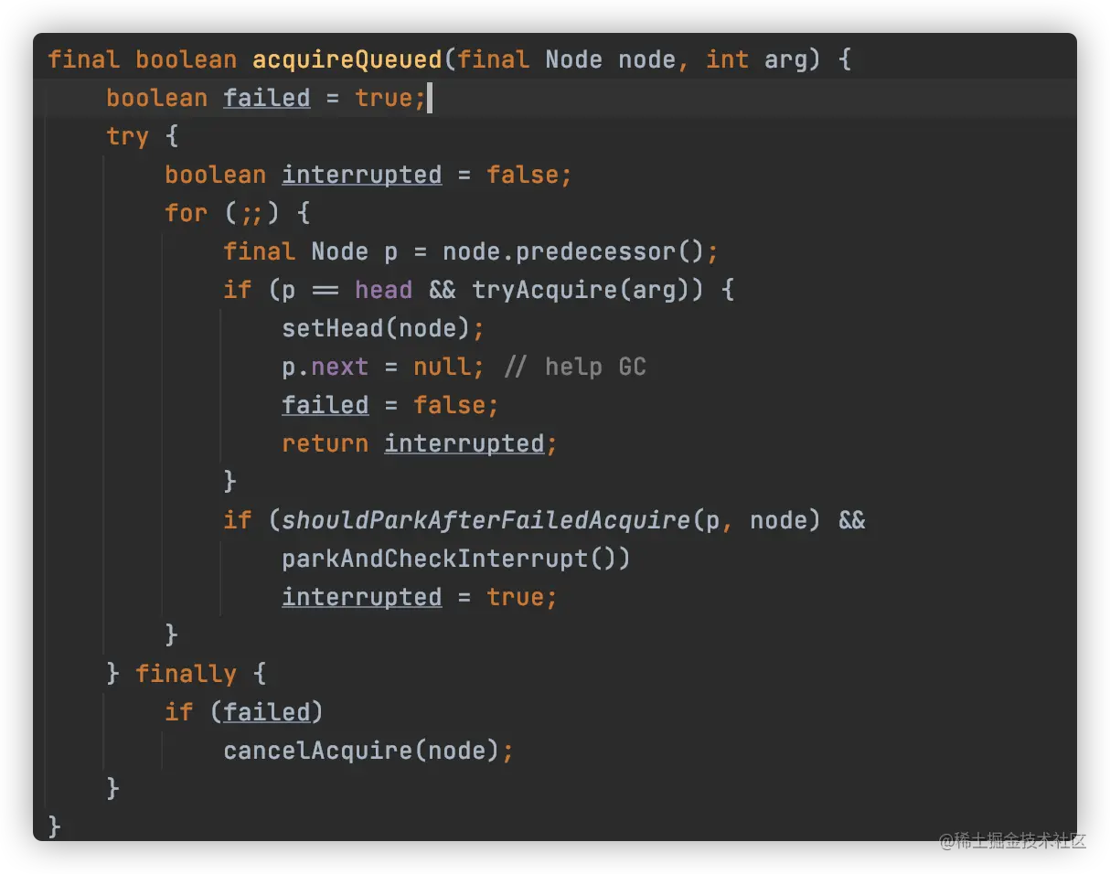 - 抢到了,说明前一个节点已经把锁释放了,那么就将自己设置为头节点