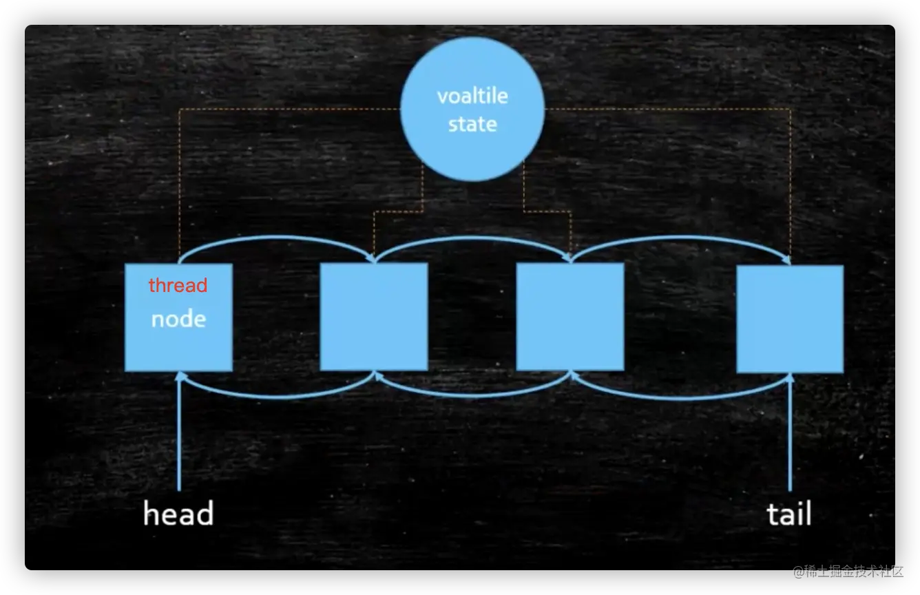- AQS 队列在内部维护了一个 FIFO(先进先出) 的双向链表,在双向链表中,每个节点都有两个指针,分别指向直接前驱节点和直接后继节点。使用双向链表的优点之一,就是从任意一个节点开始都很容易访问它的前驱节点和后继节点。