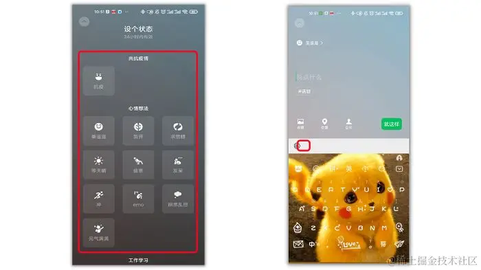 第2步:随后在此处随便选择一个自己喜欢的状态后,不需要输入文本,直接点表情图标;