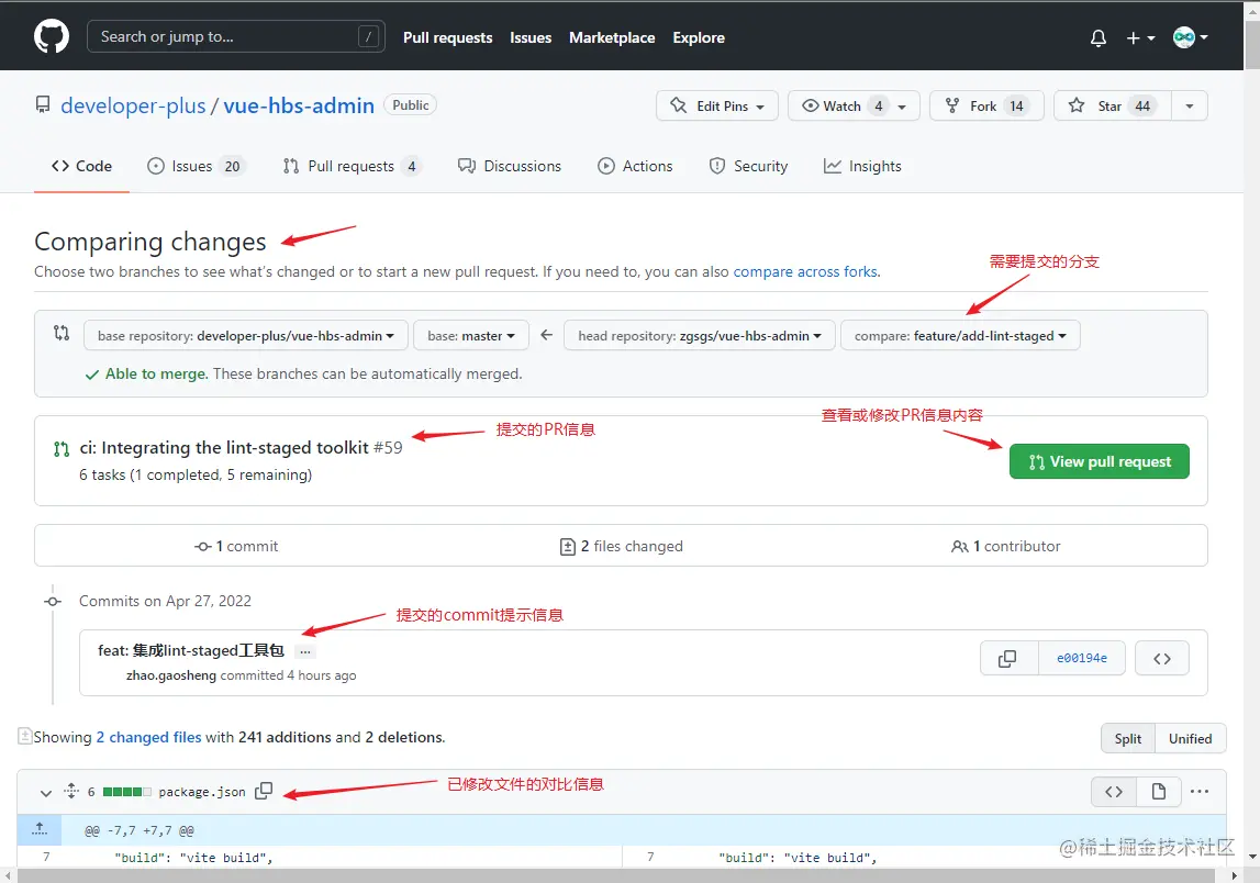 通过后的PR将被管理员合并到主分支。完成PR操作。