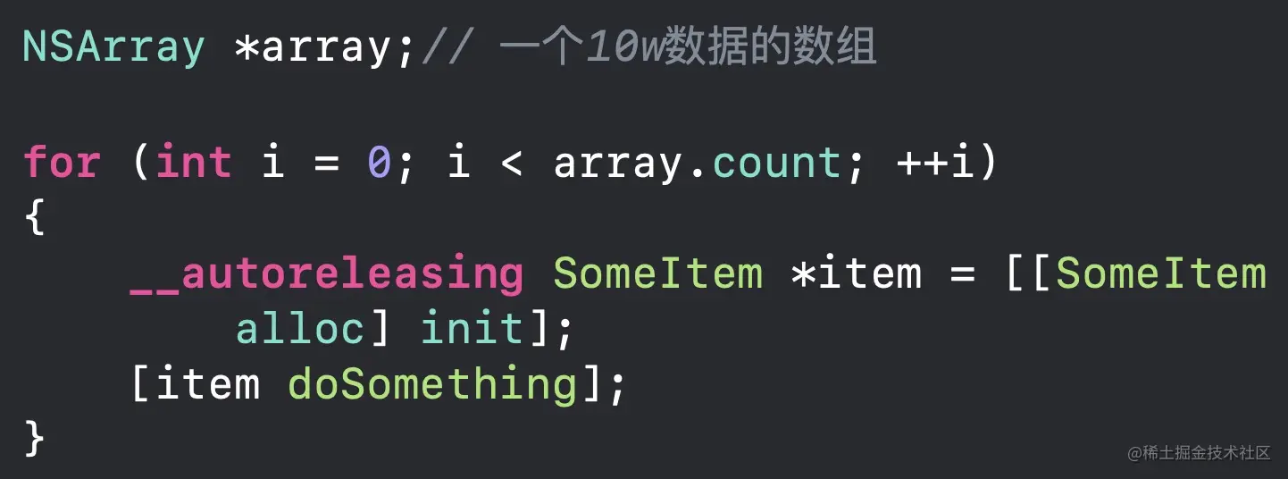 在iOS中由于有ARC的存在,经常有博客会讲到循环时的内存堆积问题,主动加入autoreleasepool可以防止内存延时释放,降低内存峰值,这也是面试中优化方面常会被考察的点,于是项目中基本上凡是有有较多数据循环的地方都会被手动加入autoreleasepool,如果你没加,在code review的时候都会被认为为“没有一定内存方面的思考”(菜鸡😂)