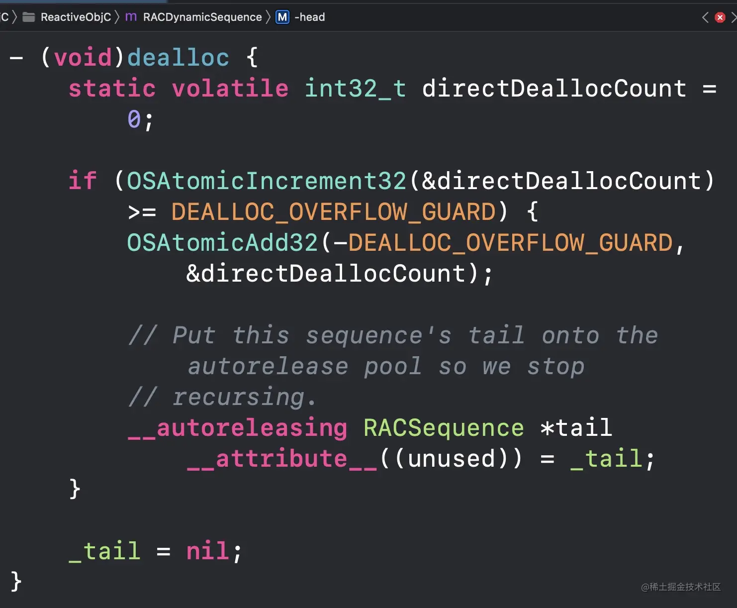 RAC代码库里有更精细的实现(超过某一阈值后加入到autoreleasepool中),代码如下