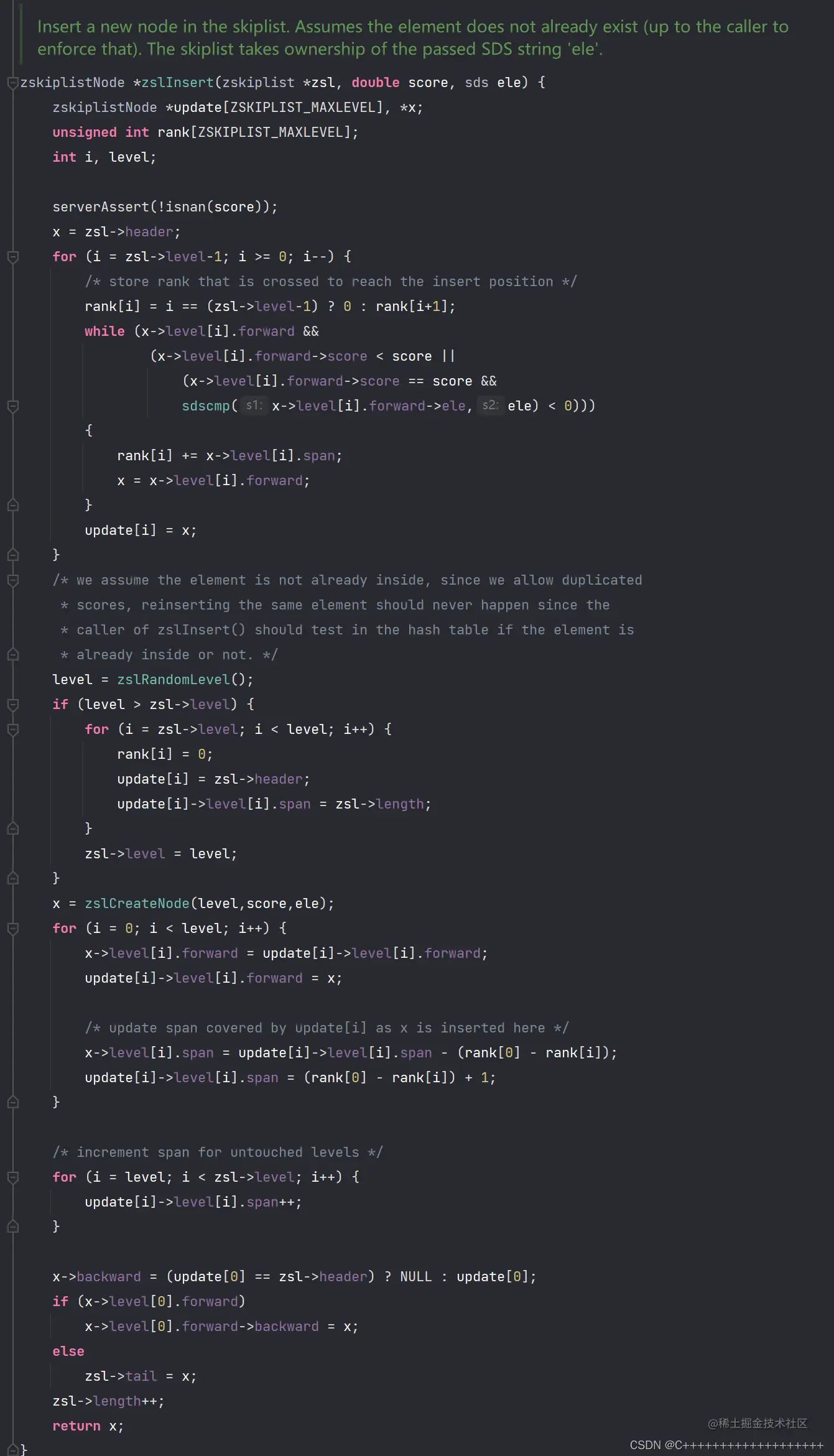 想要弄清这个,可以查看一篇大佬的文章,把跳表分析的非常透彻,并且剖析了Redis源码,我这里只讲解不带span的Redis源码C++复现。(后续会有带span的完美Redis源码C++复刻) 大佬的讲解