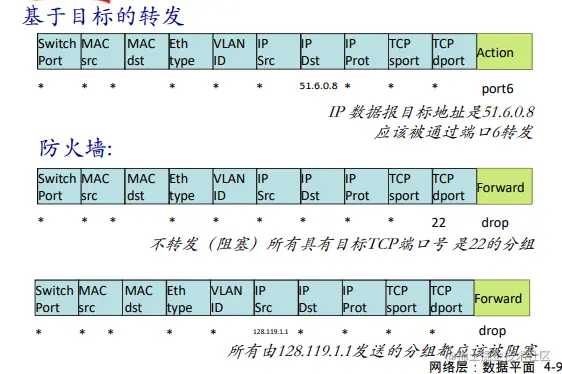- 目前几乎所有的网络设备都可以在这个 匹配+行动模式 框架进行描述,具体化为各种网络设备包括未来的网络设备