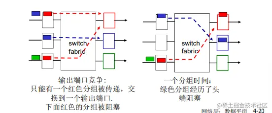 Head-of-the-Line (HOL) blocking: 排在队头的数据报 阻止了队列中其他数据报向前移动