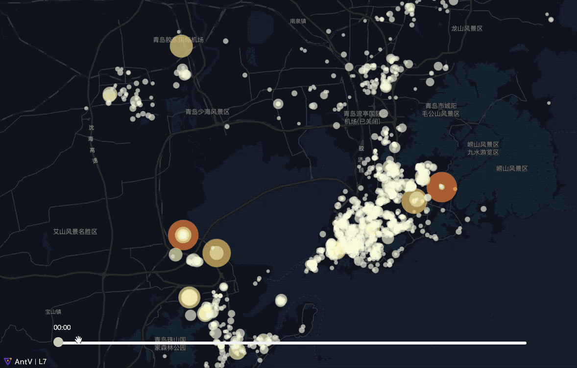 首先我们创建一个点图层用于绘制地图上的点,然后我们通过更新图层的数据来实现时序数据的切换。在这里提高性能的关键是我们需要提前计算图层在绘制时使用的顶点数据,而不是在切换的时候实时计算顶点数据。