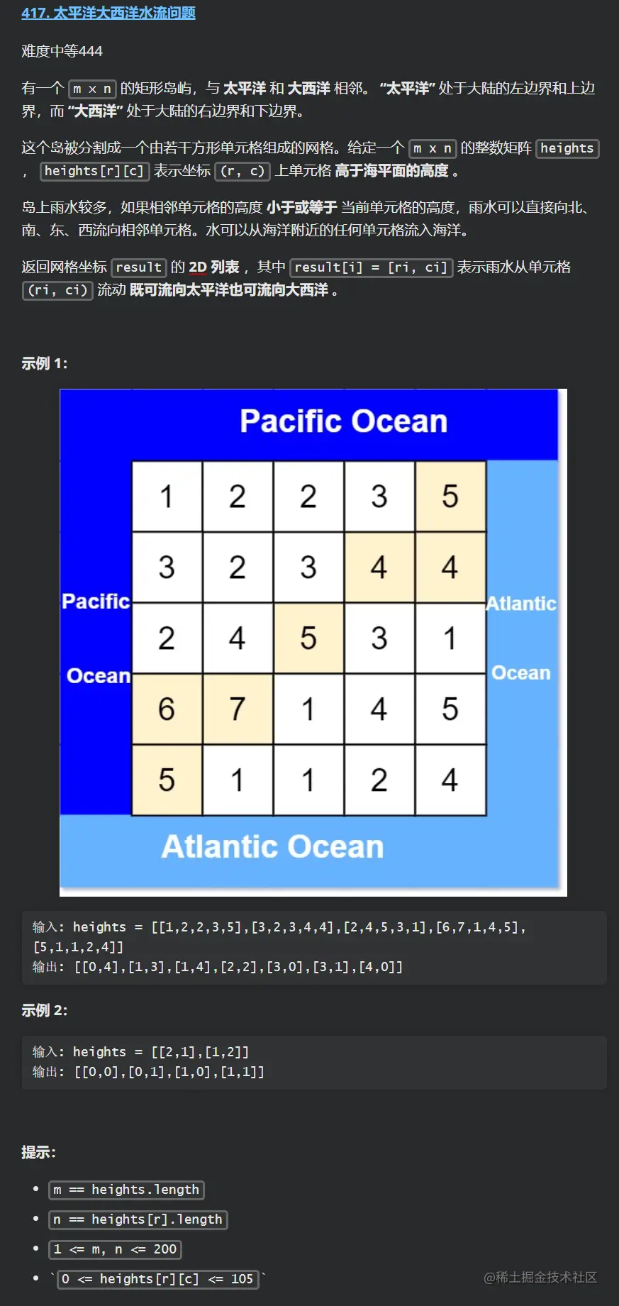 本次刷题日记的第 45 篇,力扣题为:417. 太平洋大西洋水流问题 ,中等