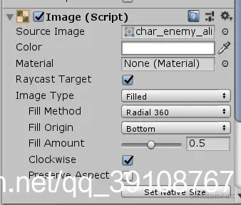 需要扇形或扇形圆环的时候,在UGUI中,可以直接使用扇形的图片,也可以给Image添加一张圆形或圆环的图片,ImageType设置为Filled模式,FillMethod选择Radial360,动态调整扇形角度实现扇形的圆或圆环。