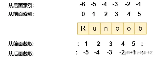 索引从0开始计数,-1 为从末尾的开始位置