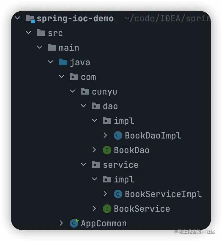 <bean id="bookDao" class="com.cunyu.dao.impl.BookDaoImpl"/>