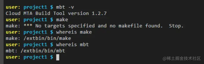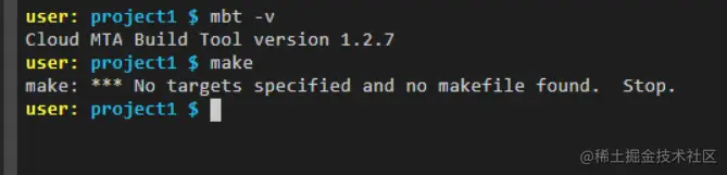 执行的命令行是 mbt build -s,在 project1 根目录下执行该文件。