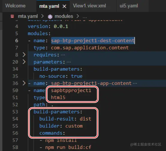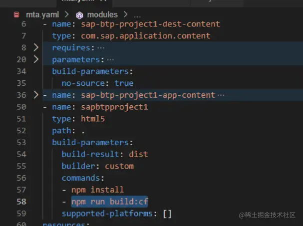 依次构建 mta.yaml 文件里的 module: