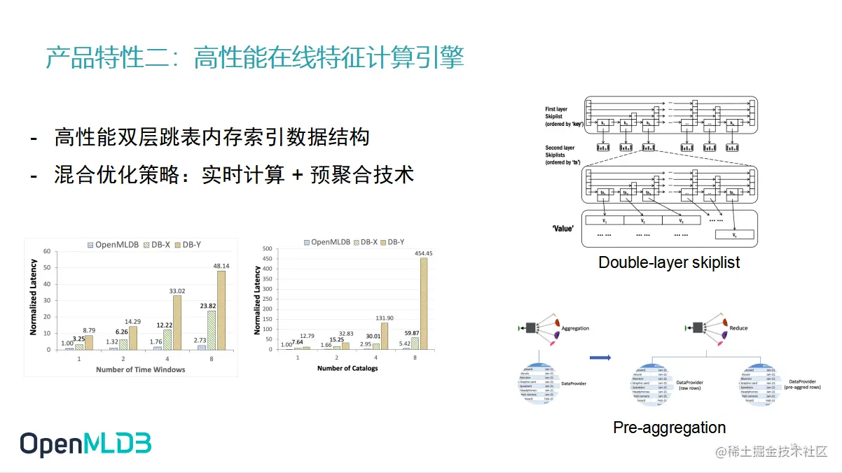 第一,在线计算引擎加存储引擎都是我们自研的一个时序特征数据库,在内部它是一个双层的跳表结构,这有利于我们去高效地拿到窗口化的数据。