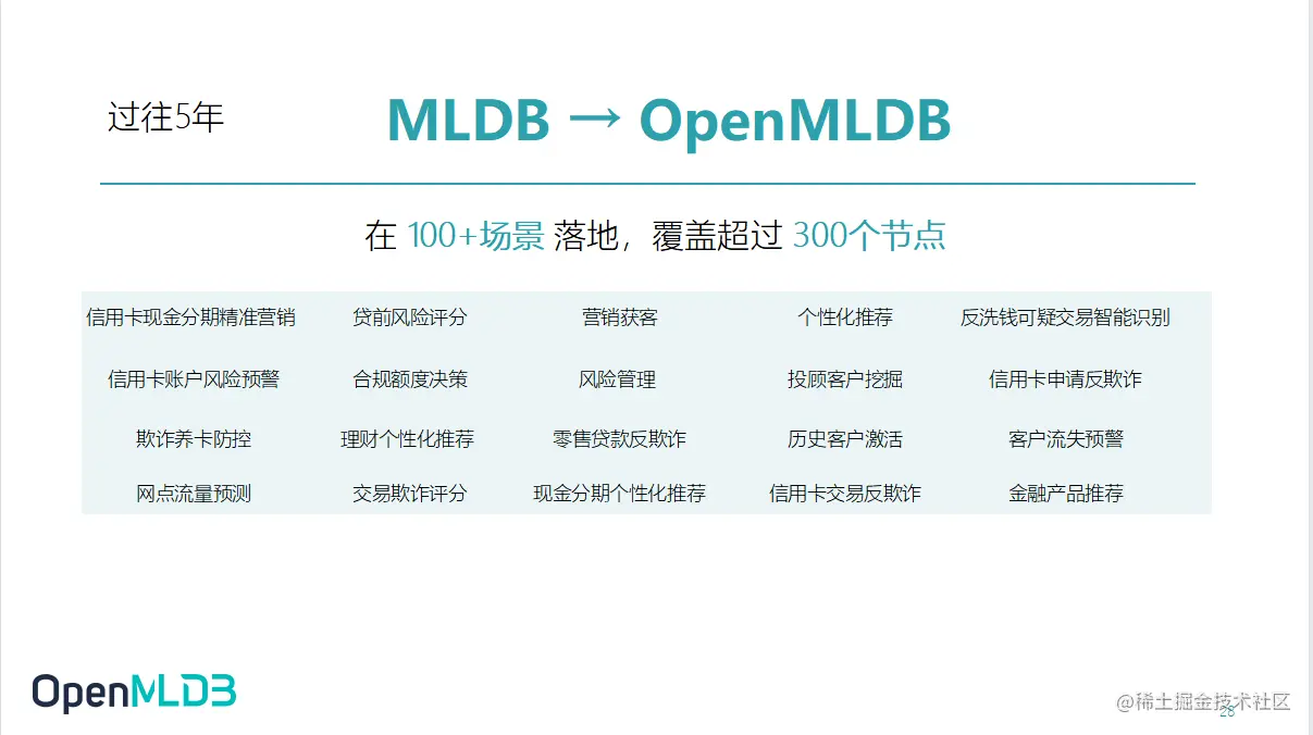 其实 OpenMLDB 是从第四范式成立第一天就开始做的产品。经过了 5 年的研发沉淀,OpenMLDB 跟随着商业产品经历了上百个项目的验证,累积了非常多的案例。