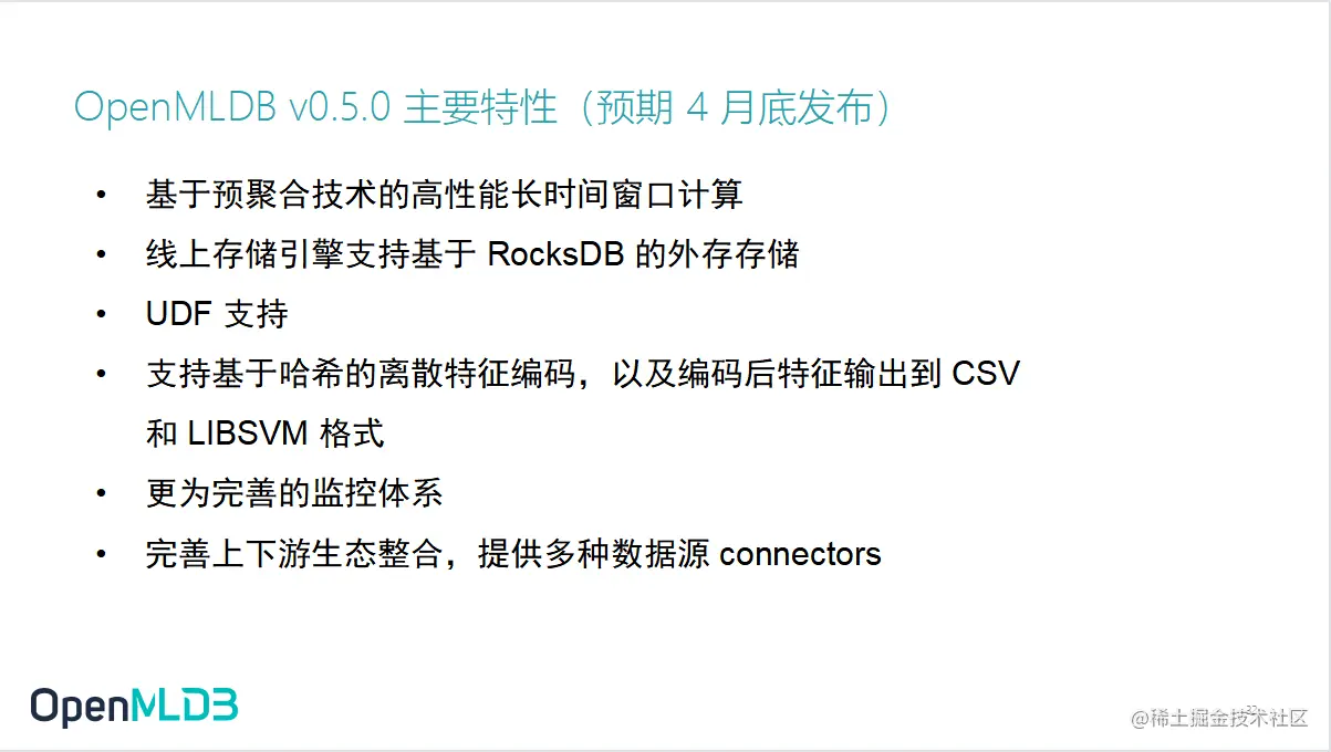 最后想重点给大家介绍 OpenMLDB v0.5.0的新特性,预计在 4 月底发布。