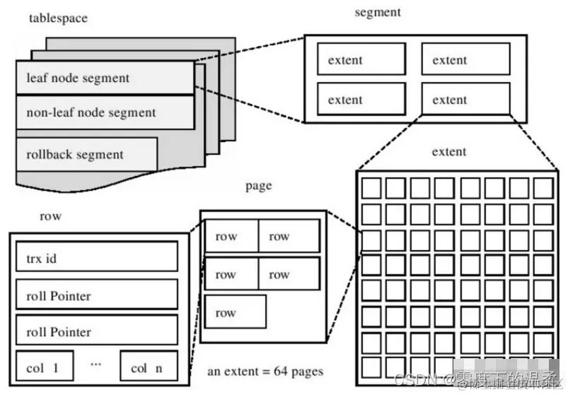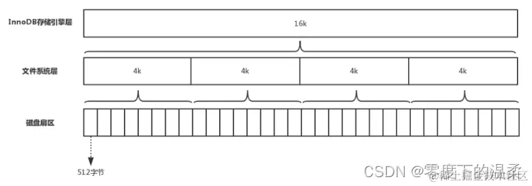 磁盘扇区、文件系统、InnoDB存储引擎都有各自的最小存储单元