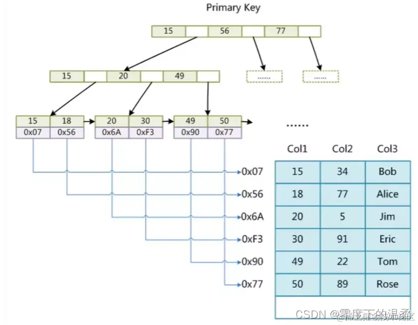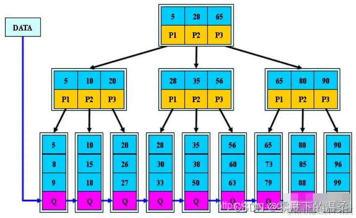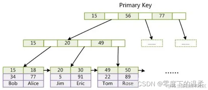 - 每一个叶子节点都包含指向下一个叶子节点的指针,从而方便叶子节点的范围遍历。