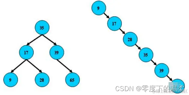 如果要找到65,左边的二叉树需要扫描3层(3次IO),而右边的却需要6层。