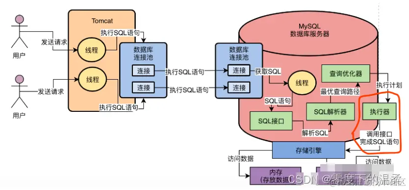 提供了应用程序接入MySQL服务的接口。客户端与服务端建立连接,客户端发送SQL到服务端。