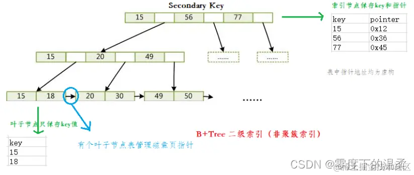 B+树 叶子节点没包含数据表中行记录就是非聚簇索引(索引和数据是分开的)。