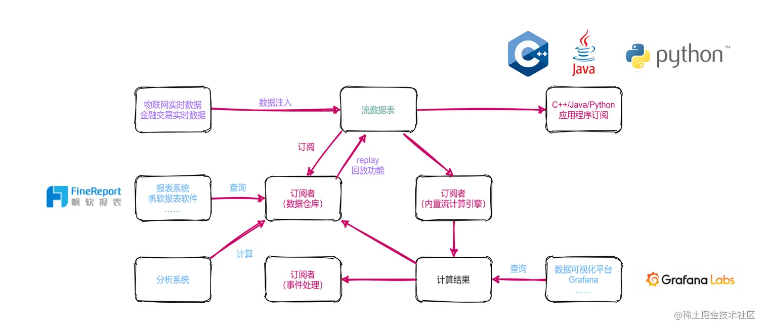 Python pandas / numpy 目前是研究阶段比较常用的高频因子解决方案,虽然 pandas 对历史面板数据处理有非常成熟的解决方案,但无论对历史数据计算,还是对实时数据计算,其性能都较差;同时由于 Python 仅支持全量计算,因此无法达到实时计算的性能要求。
