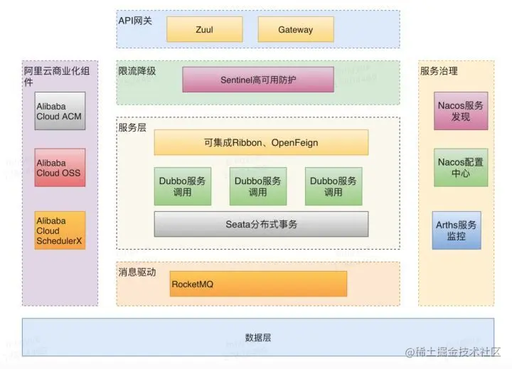 依托 Spring Cloud Alibaba,您只需要添加一些注解和少量配置,就可以将 Spring Cloud 应用接入阿里微服务解决方案,通过阿里中间件来迅速搭建分布式应用系统。