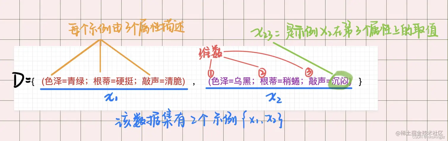一般来说我们令表示m个示例的数据集,每个示例由d个属性描述,则每个示例