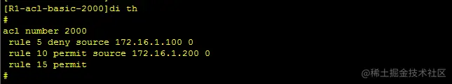[R1-acl-basic-2000]rule permit source 172.16.1.200 0