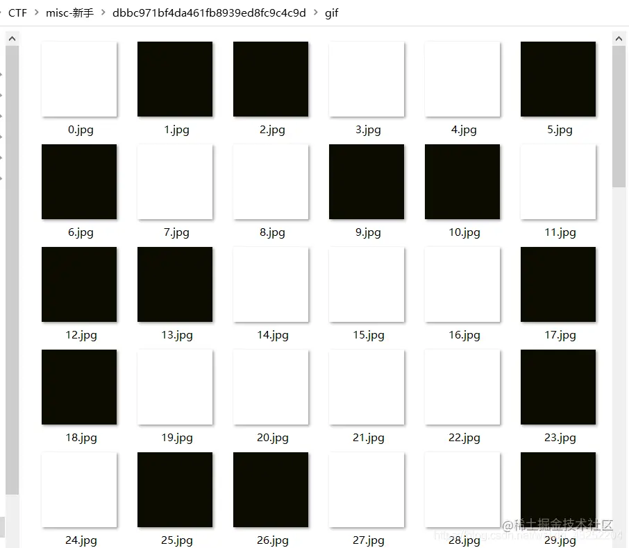 常规操作,之后得到该文件常规操作,之后得到该文件夹,由于只有黑白两张图片,想到了二进制,